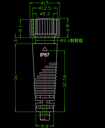 M12金屬螺母防水插頭,防水等級IP67級以上,金屬防水線